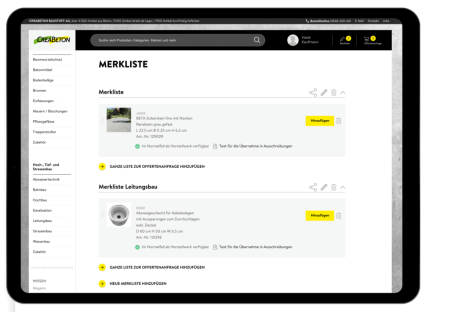 Es gibt die Möglichkeit, mehrere Merklisten zu erstellen und zu teilen. Ausschreibungstexte können direkt kopiert werden.