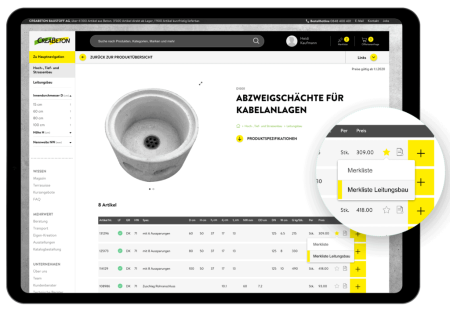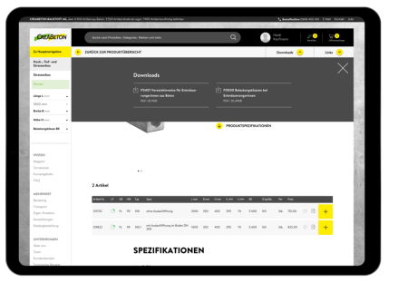 Die Darstellung der Produkte orientiert sich an der bestehenden PIM-Anbindung und werden laufend durch neue Features, die den Bestellprozess optimieren, ergänzt.