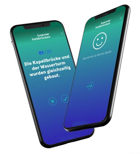 Beim Brücken-Quiz können Gross und Klein ihr Wissen über die Luzerner Holzbrücken testen und sich mit Familie und Freunden messen. Wir haben das Quiz konzipiert, programmiert und die Fragen erarbeitet. Herausgekommen ist ein Quiz, das auf spielerische Art und Weise Wissen zu den drei Holzbrücken abfragt, aber auch vermittelt. Zudem führt ein virtueller Rundgang über die Brücken.